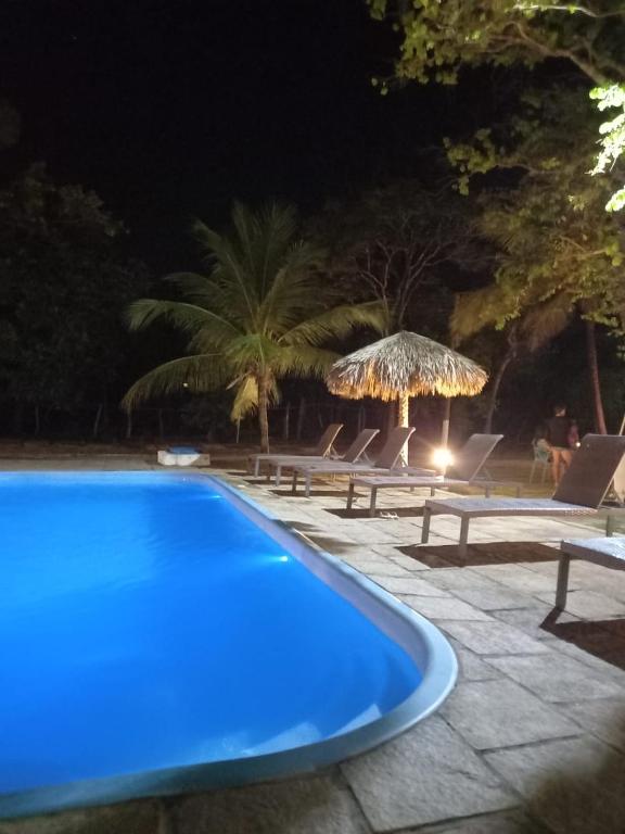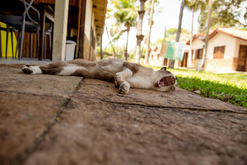 Acomodações: chalés para até 4 pessoas completos com ar-condicionado, frigobar, smart TV , roupeiro, ducha aquecida, varanda com rede.