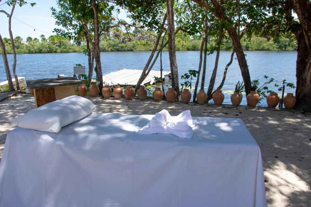 Outros serviços adicionais, pagos a parte, são: restaurante, passeios de barco, massagem relaxante na beira do Rio Preguiças e auditório de eventos.