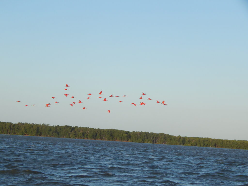 • Avistamento de Animais: Tenha a chance de observar diversas espécies de aves, como os guarás vermelhos (um espetáculo ao entardecer), garças, colhereiros e maçaricos, além de répteis como jacarés e tartarugas marinhas.
